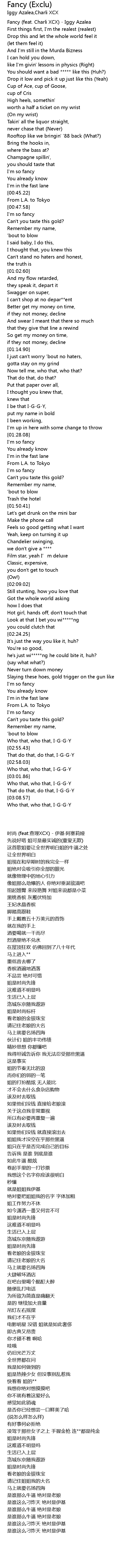 | [00:00.59] | Fancy (feat. Charli XCX) - Iggy Azalea |