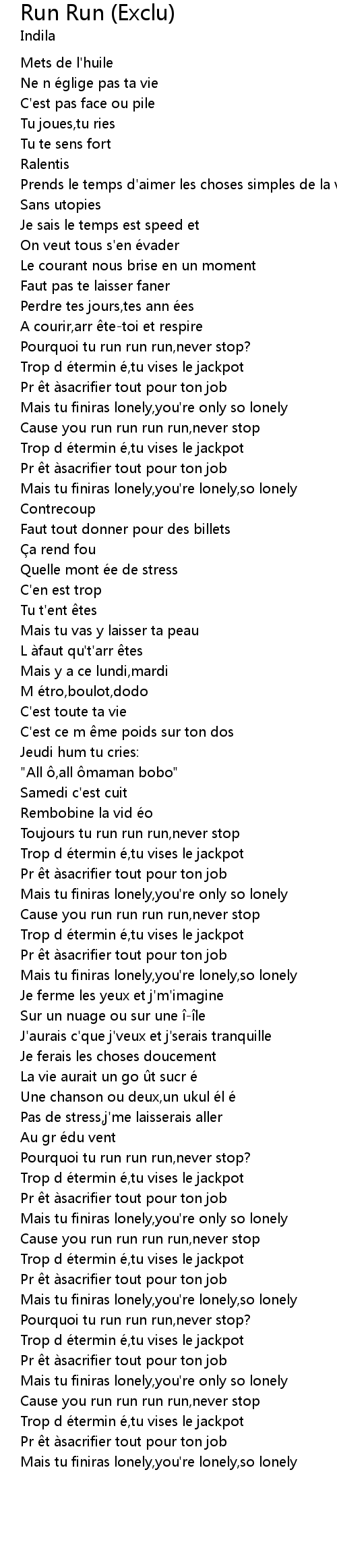 | [02:42.967] | Pourquoi tu run run run, never stop? |