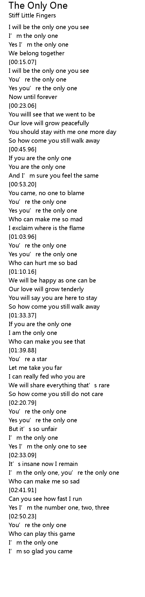 | [02:50.73] | You' re the only one |