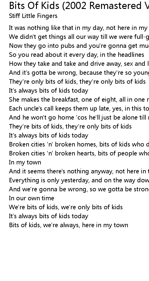 Broken cities 'n' broken homes, bits of kids who don't grow whole |