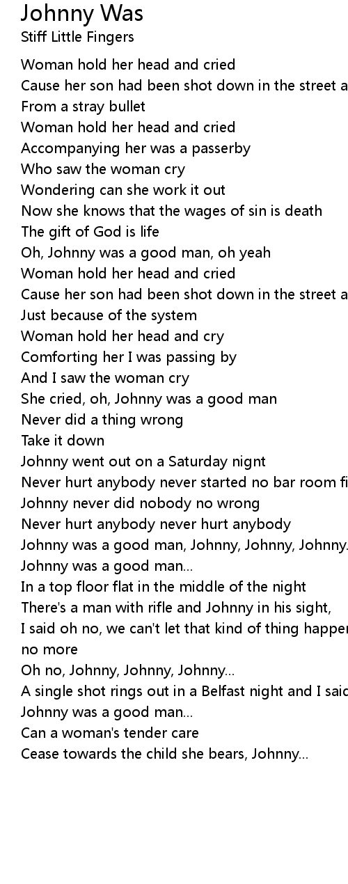She cried, oh, Johnny was a good man |