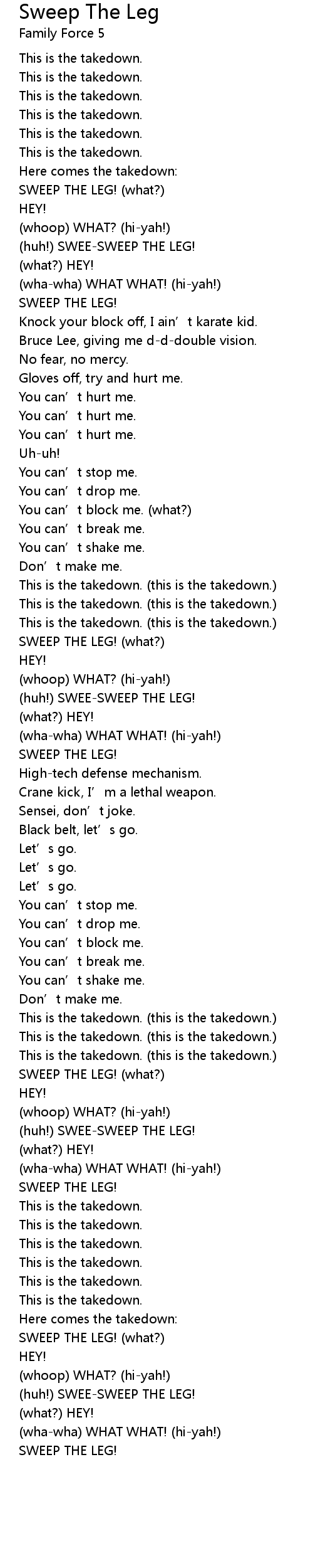 | SWEEP THE LEG! (what?) | |