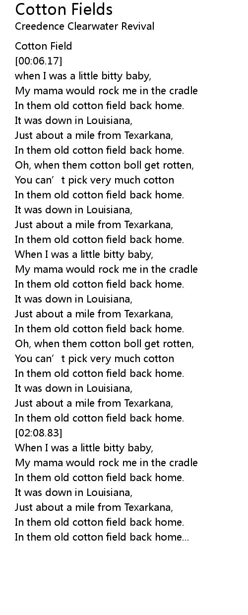 | [00:34.37] | Oh, when them cotton boll get rotten, |