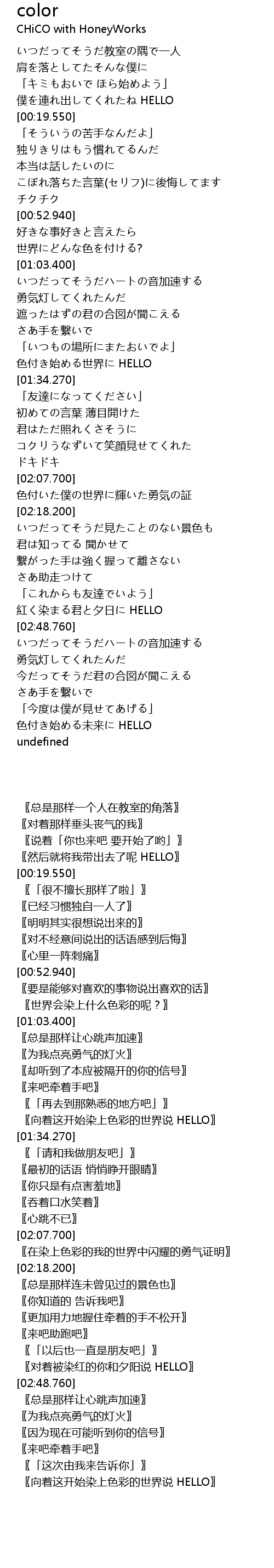 | [03:32.650] | sè fù shǐ wèi lái HELLO |