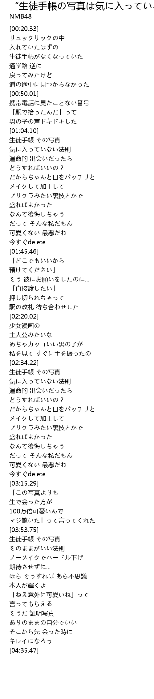 | Song | “生徒手帳の写真は気に入っていない”の法則 |