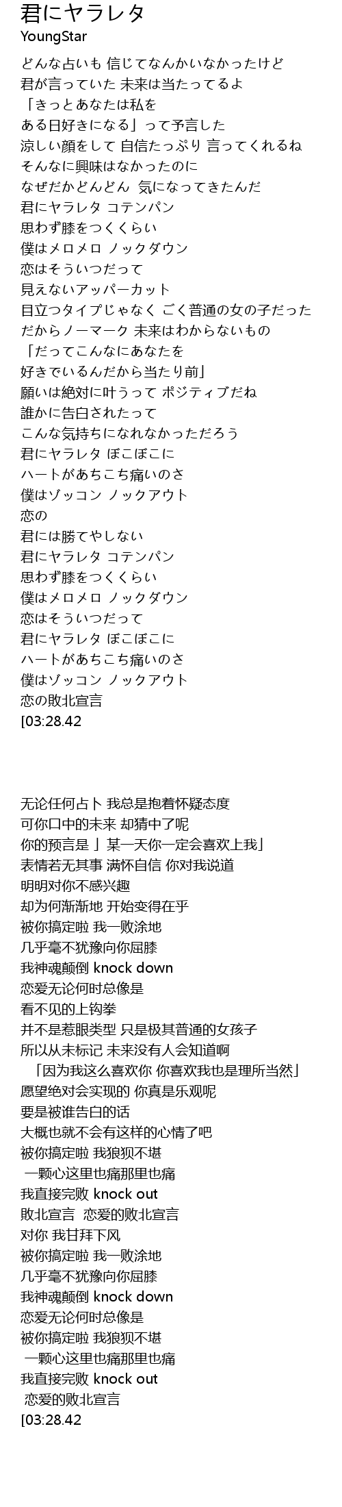 | [03:06.31] | 僕はメロメロ ノックダウン |