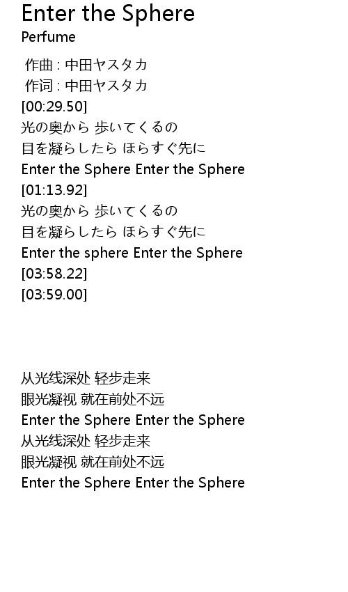 | [01:05.75] | Enter the Sphere Enter the Sphere |