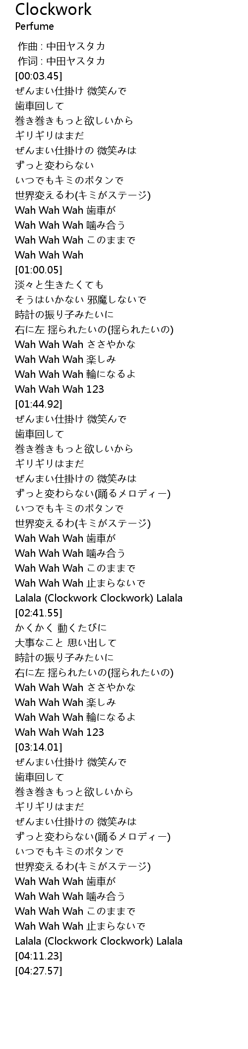 | [03:58.23] | Lalala Clockwork Clockwork Lalala |