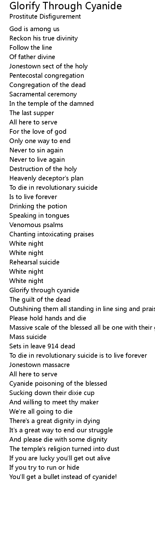 Glorify through cyanide |