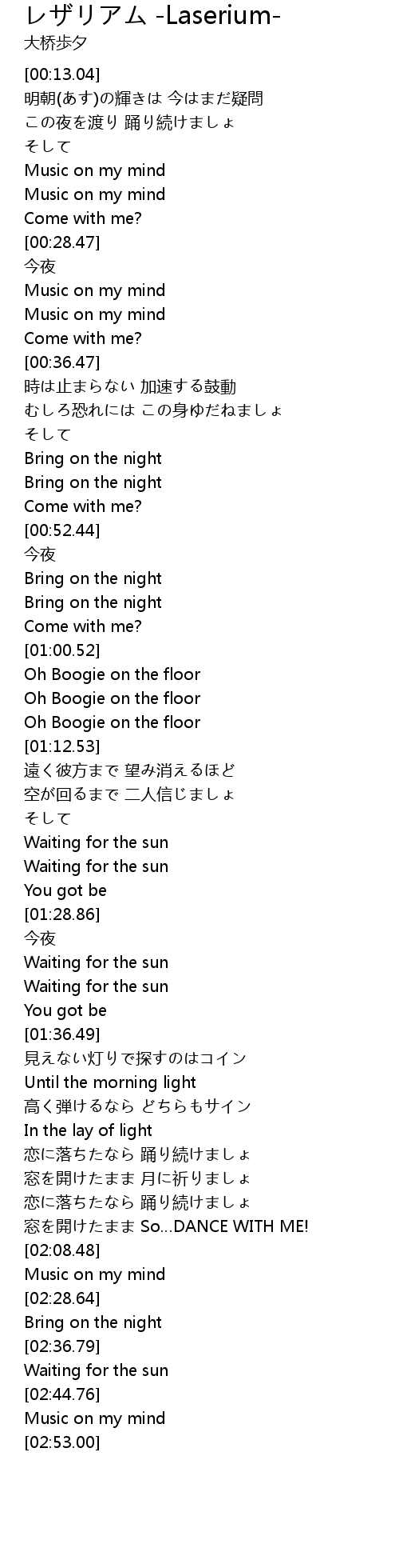 | [02:04.12] | 窓を開けたまま So…DANCE WITH ME! |
