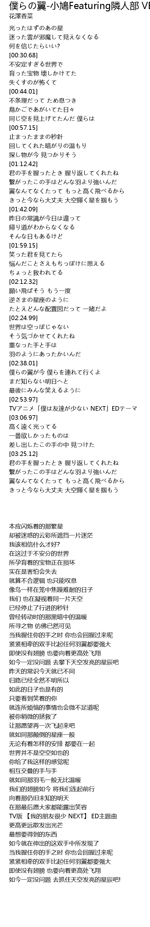 | [03:32.52] | 繋がったこの手はどんな羽より強いんだ |