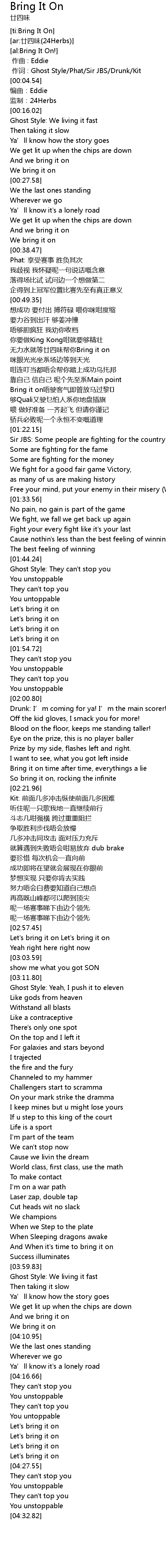 | [01:11.63] | Bring it on唔驶客气即管放马过黎 |