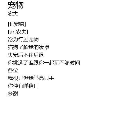 | [00:09.361] | 猫狗了解我的凄惨 |