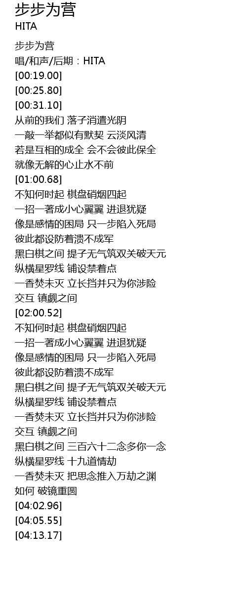 | [00:01.00] | 步步为营 |