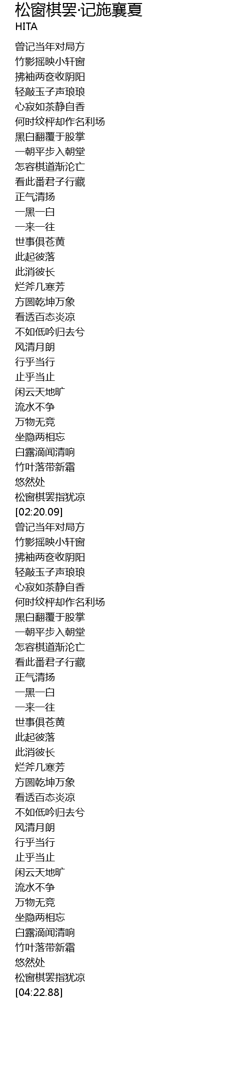 | [03:18.53] | 怎容棋道渐沦亡 |