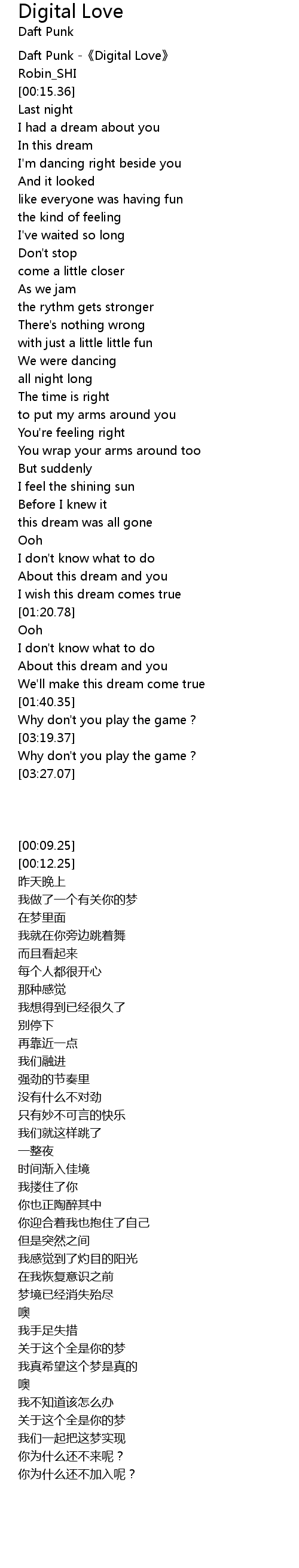 | [00:09.25] | Daft Punk -《Digital Love》 |