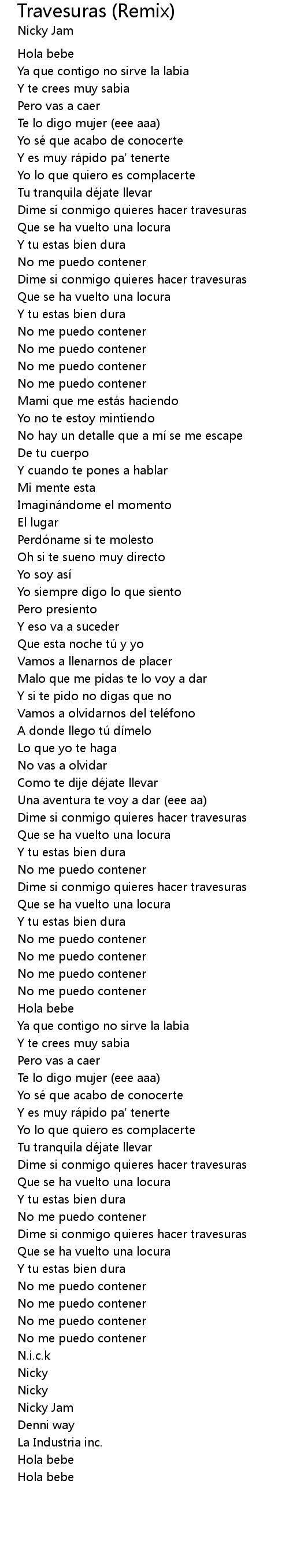 | Song | Travesuras (Remix) |