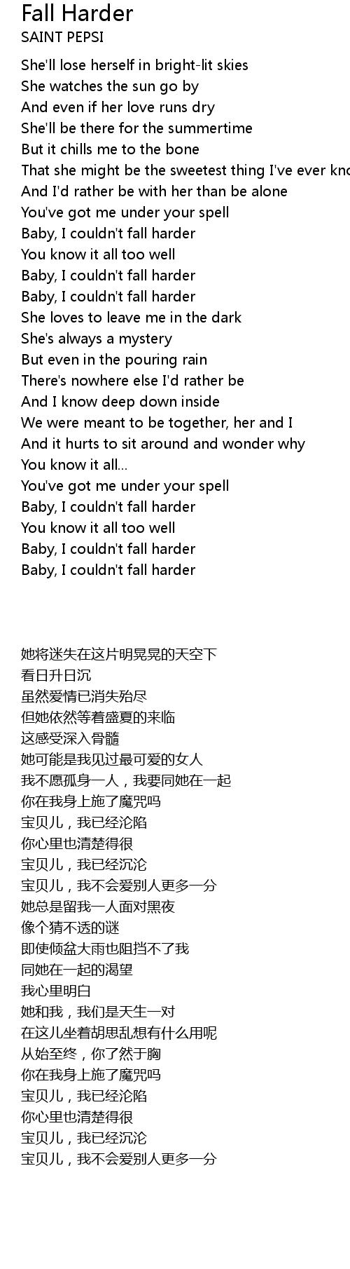 Baby, I couldn't fall harder |