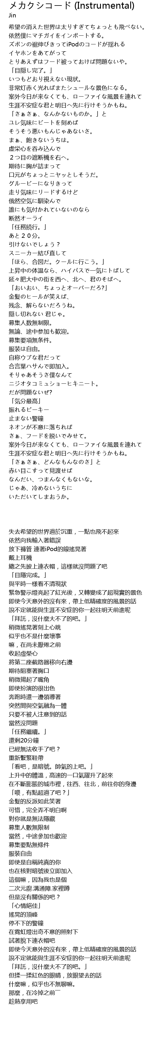 | Song | メカクシコード (Instrumental) |