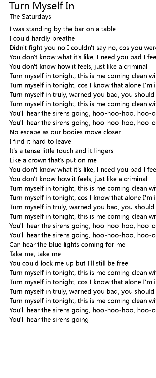 Turn myself in tonight, cos I know that alone I'm in danger |