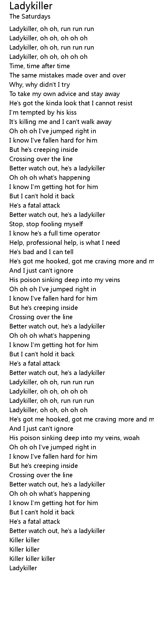 Ladykiller, oh oh, run run run |