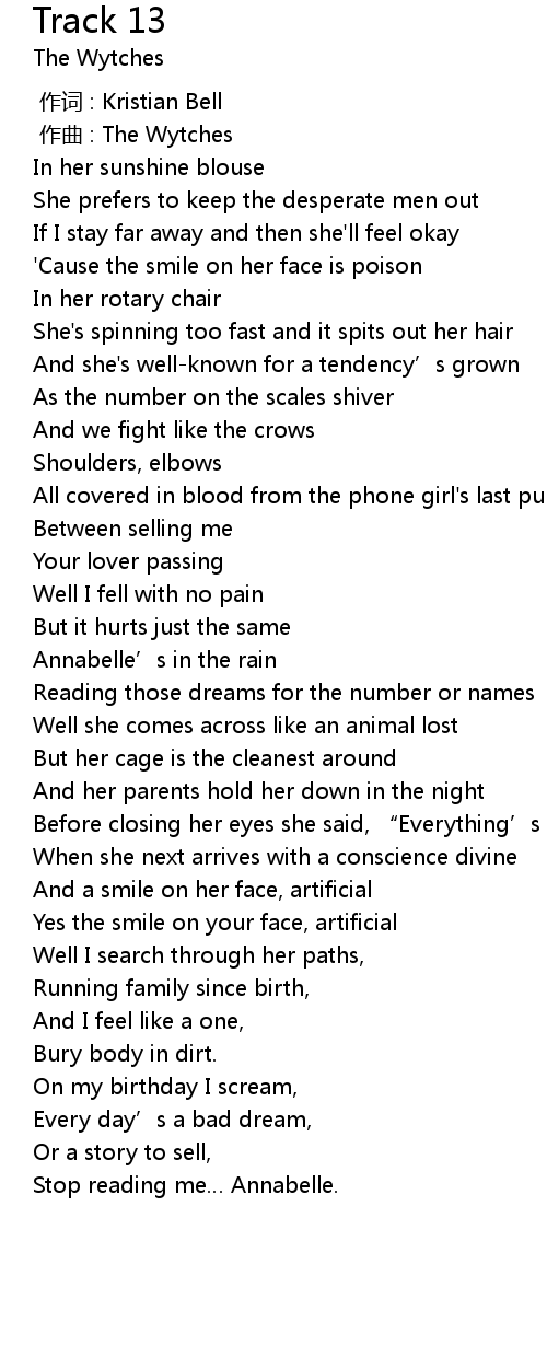 | [02:29.00] | Stop reading me Annabelle. |