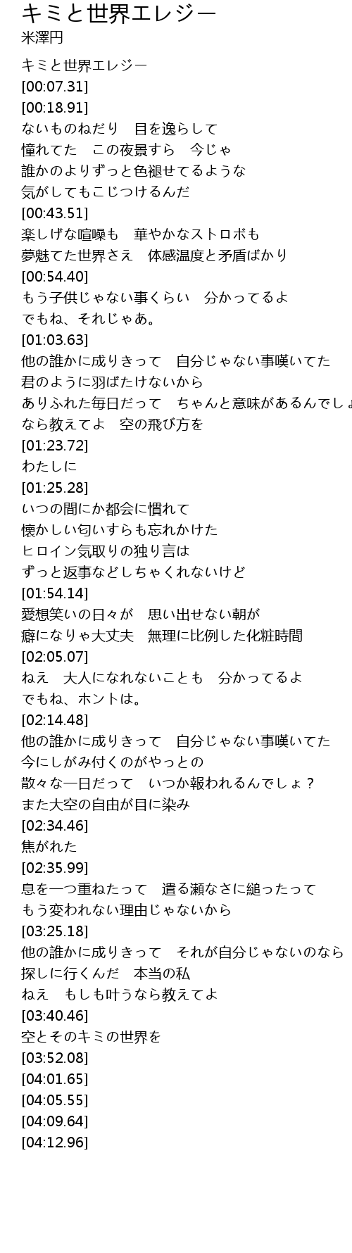 | [01:14.11] | ありふれた毎日だって ちゃんと意味があるんでしょ |