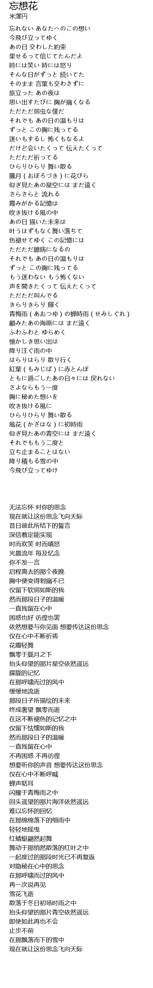 忘れない あなたへのこの想い |
