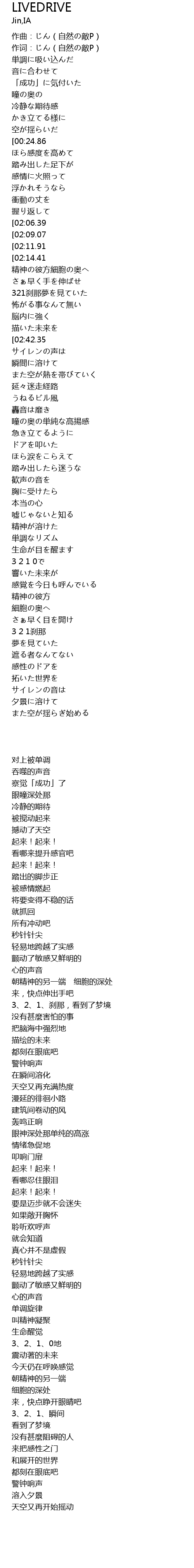 | [00:35.84][02:09.07] | 簡単に実感を跨いだ |