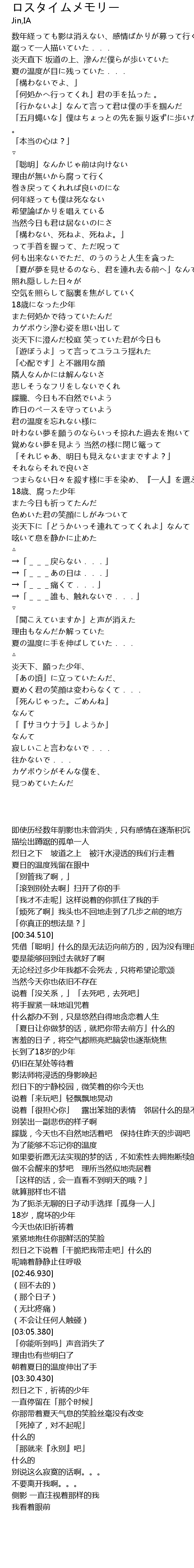 | [02:37.920] | 炎天下に「どうかいっそ連れてってくれよ」なんて |