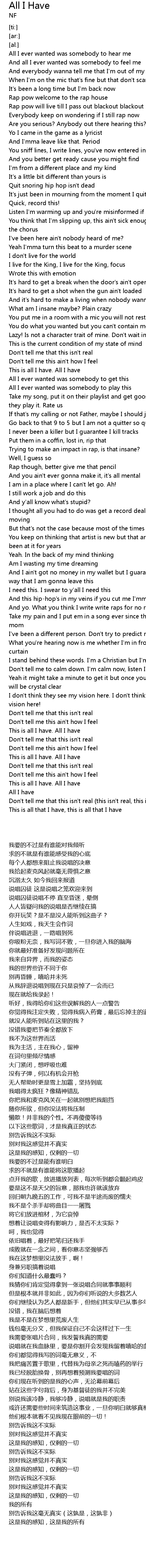| [01:35.25] | This is all I have. All I have |