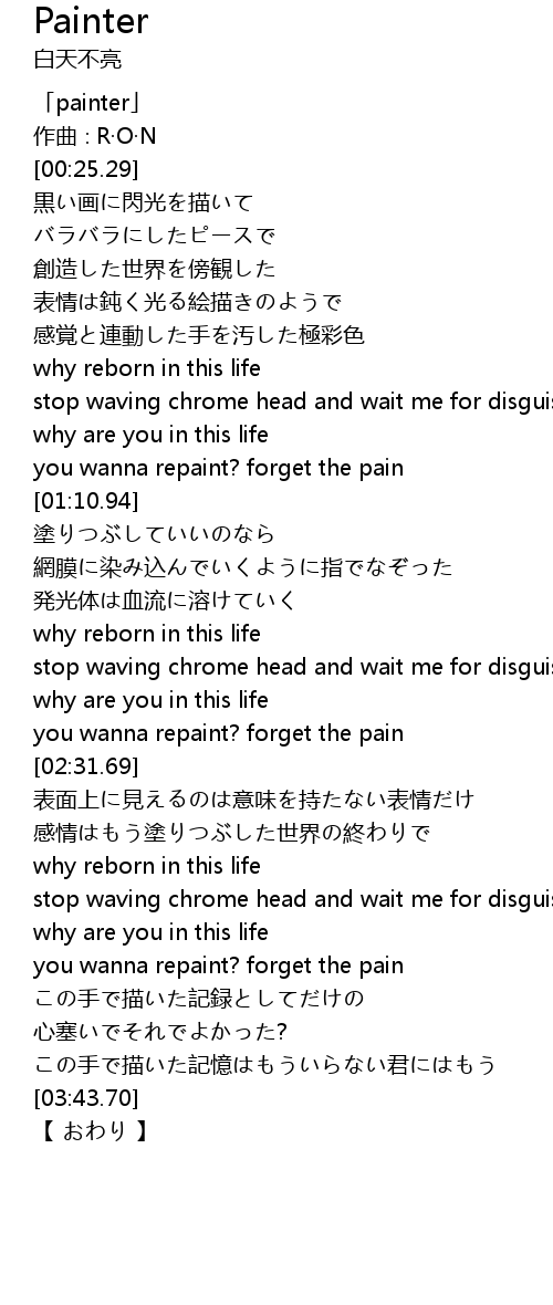 | [03:11.65] | stop waving chrome head and wait me for disguise |