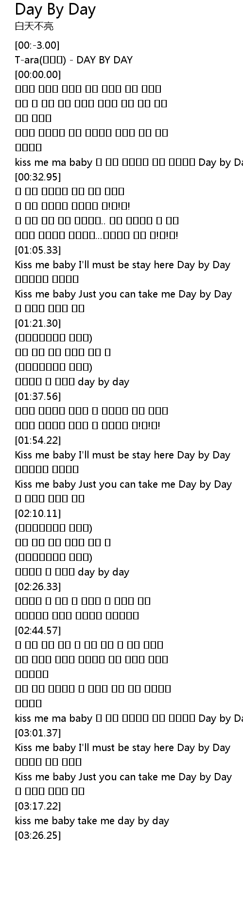 | [03:01.59] | Kiss me baby I'll must be stay here Day by Day |