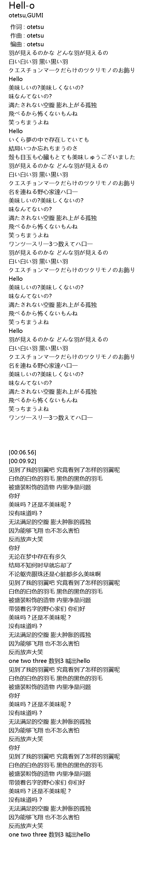 | [02:16.36] | 白い白い羽 黒い黒い羽 |