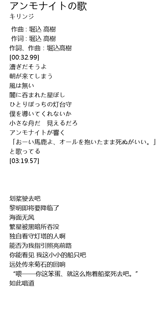 | [02:53.28] | 「おーい馬鹿よ、オールを抱いたまま死ぬがいい。」 |