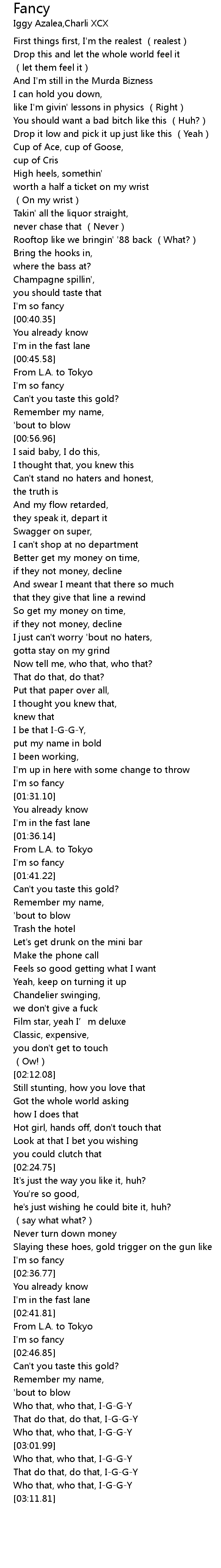 | [00:38.74] | I'm so fancy |
