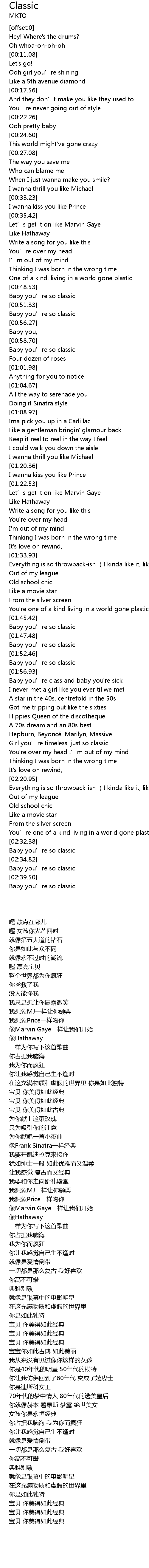 | [00:59.29] | Baby you’re so classic |