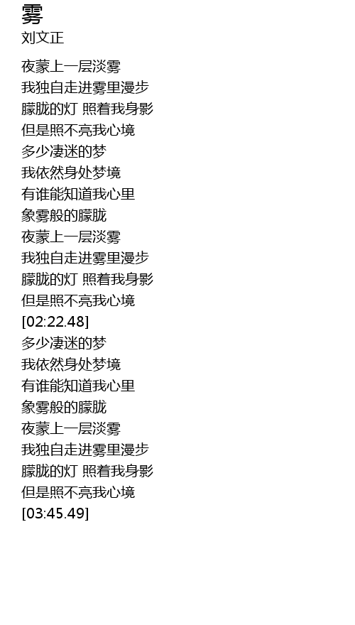 | [03:11.77] | 象雾般的朦胧 |