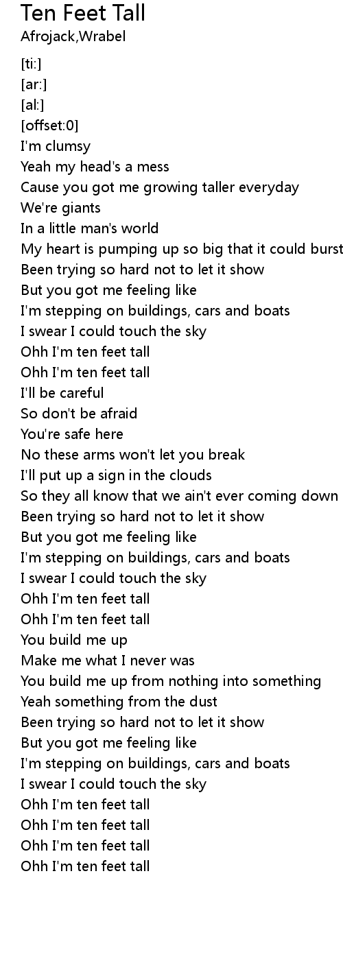 | [03:04.70] | Ohh I'm ten feet tall |