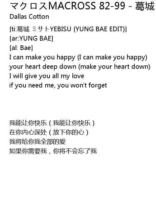 | Song | マクロスMACROSS 82-99 - 葛城 ミサトYEBISU (YUNG BAE EDIT) |