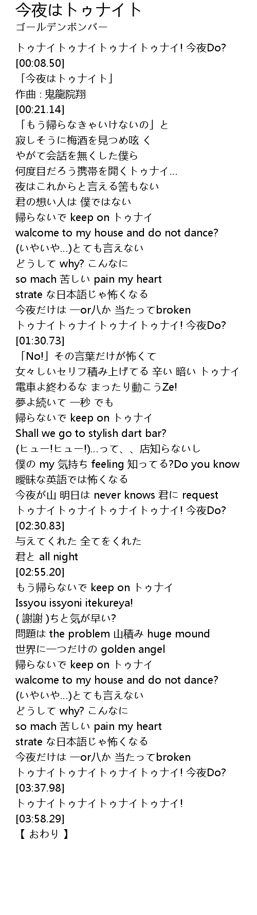 | [03:51.90] | トゥナイトゥナイトゥナイトゥナイ! |