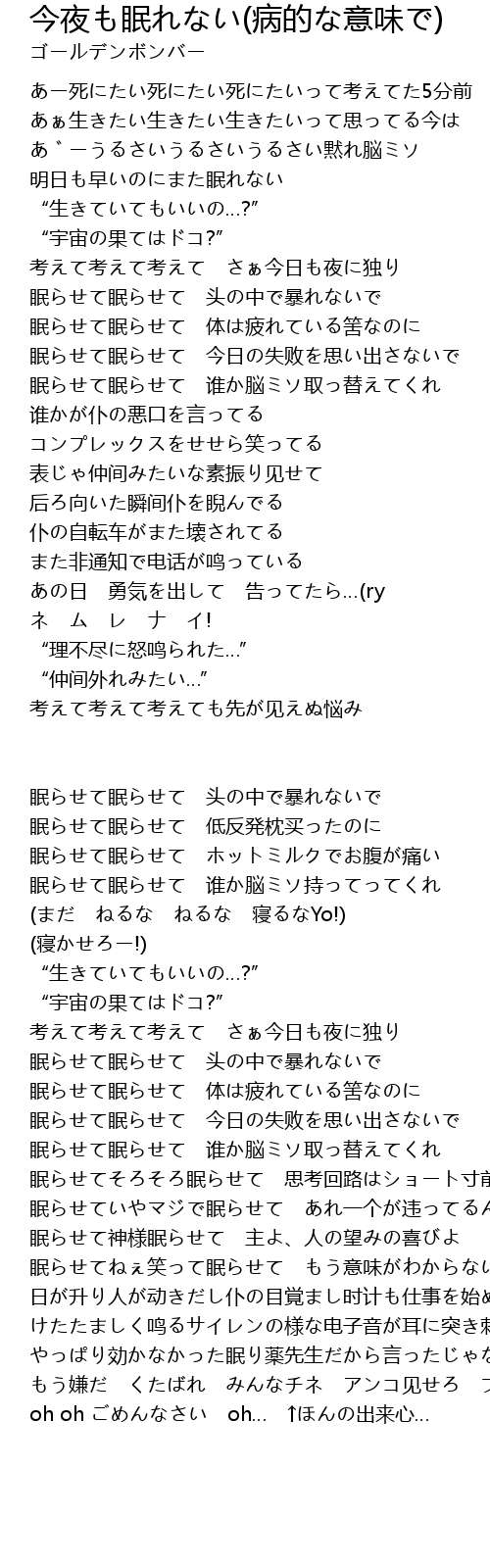 | 眠らせて眠らせて 谁か脳ミソ持ってってくれ | |