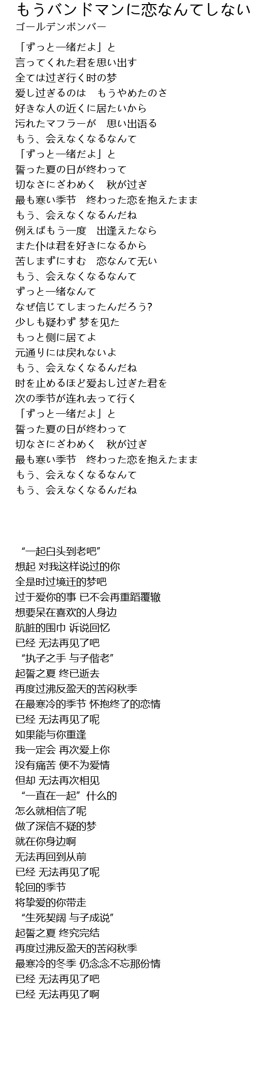 | Song | もうバンドマンに恋なんてしない |