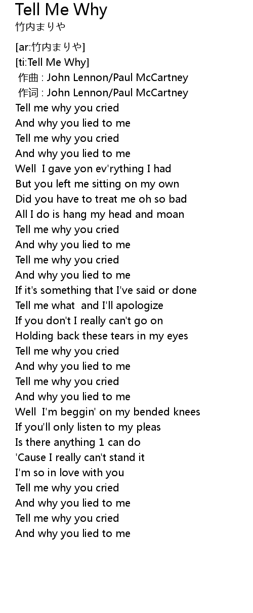| [00:01.00] | zuò cí : John Lennon Paul McCartney |
