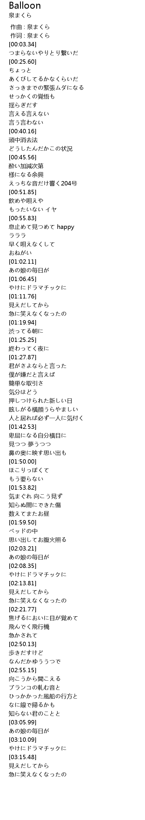 作词 : 泉まくら |