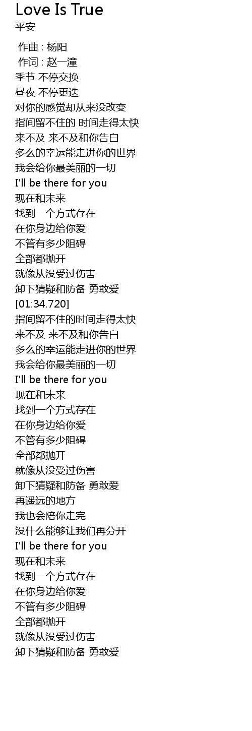 | [01:23.790] | 卸下猜疑和防备 勇敢爱 |