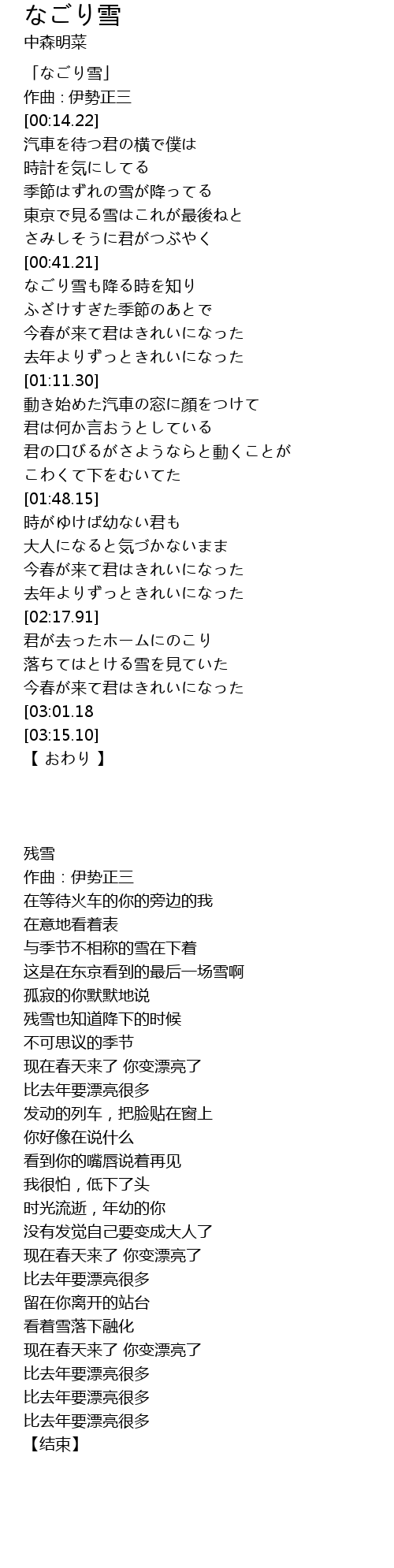 | [00:01.22] | 「なごり雪」 |