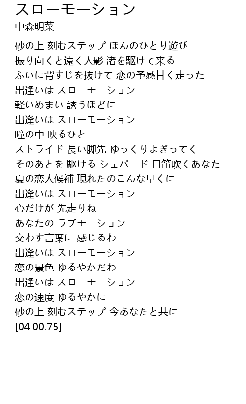 | [03:26.82] | 恋の速度 ゆるやかに |