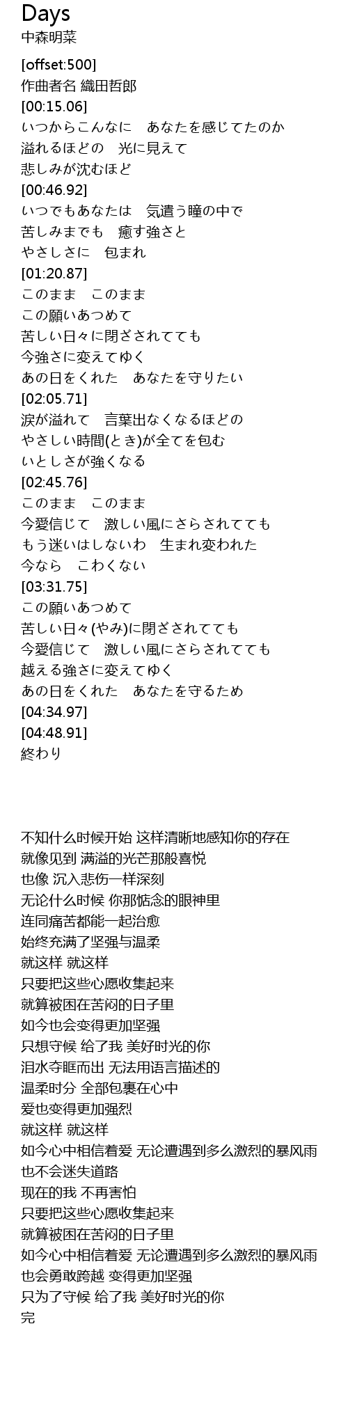 | [03:51.56] | 苦しい日々(やみ)に閉ざされてても |