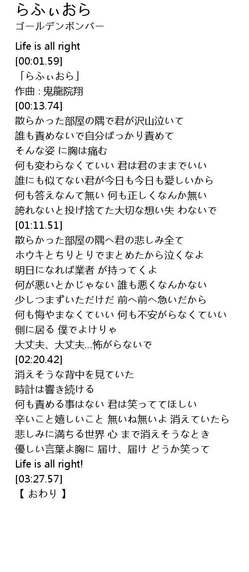 [01:36.69] ホウキとちりとりでまとめたから泣くなよ
